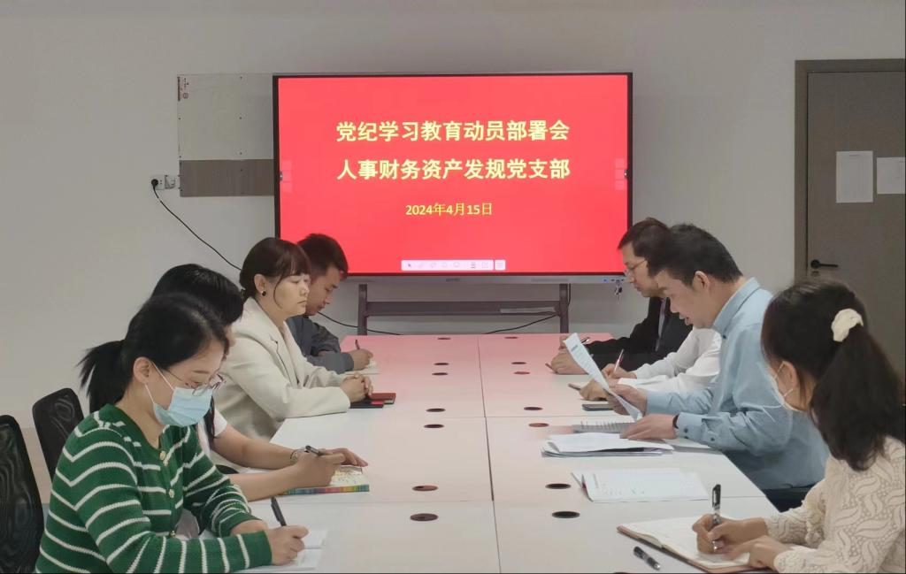 4月15日下午,人事财务资产发规党支部在图书楼一楼创业教室104召开党纪学习教育动员部署会,部署党支部党纪学习教育工作。会议由党支部书记姜有奇主持,支部全体党员参加会议。
