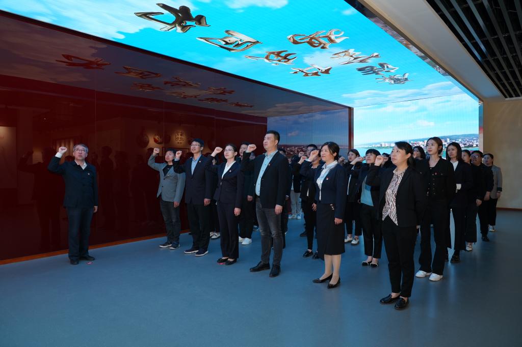 参观结束后,全体党员高举右拳,面对党旗重温入党誓词,并庄严做出廉政承诺。